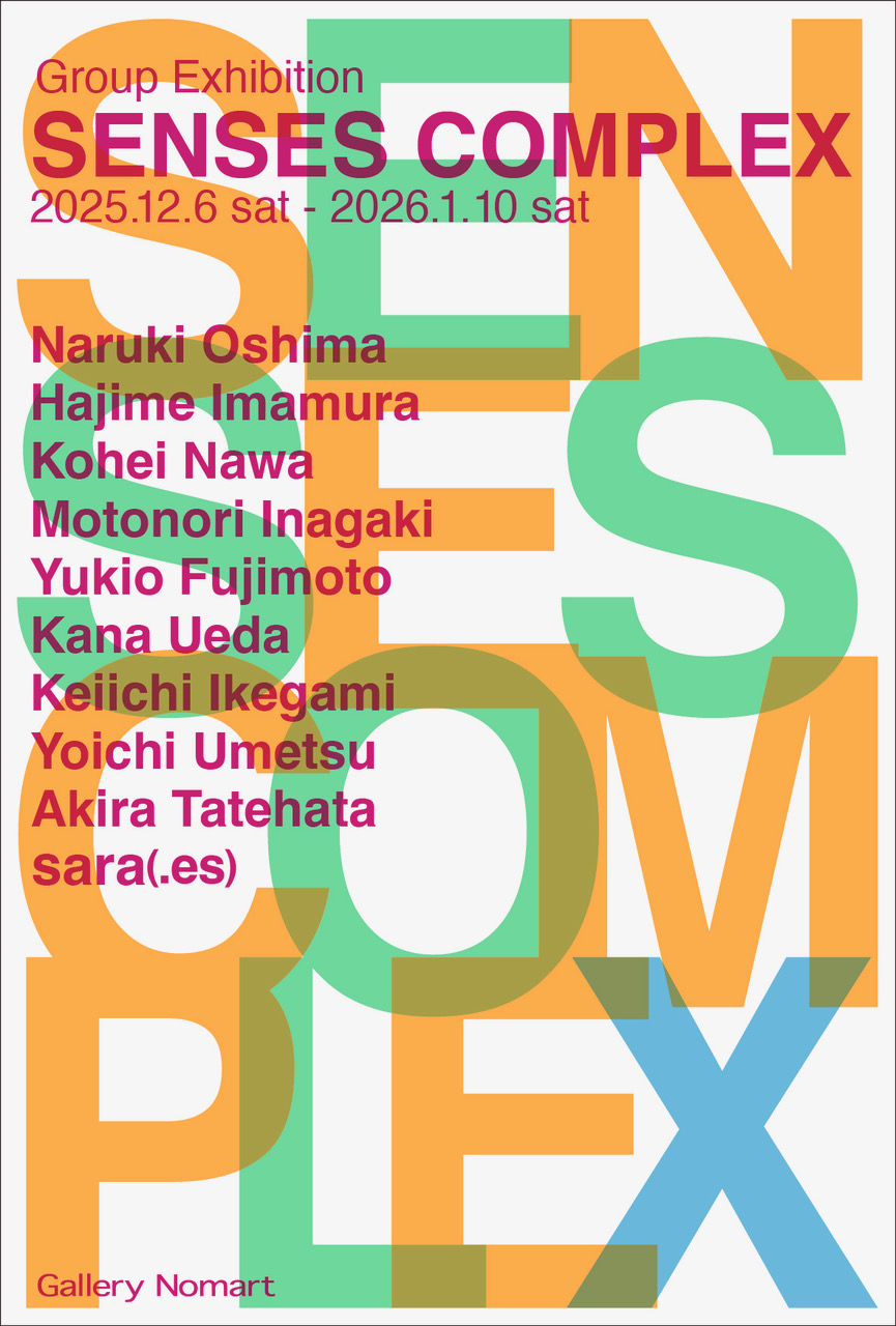 2024年末の前ディレクターの急逝を経て、新体制で走り出したノマルの2025年を締めくくる今回のグループ展は、ノマルのコンセプトである「SENSES COMPLEX」へと立ち返ります。美術を中心に、音楽やデザイン、文学など領域を横断する表現を発信し続けてきた姿勢を象徴するこのテーマのもと、多様な10名の作家が集います。