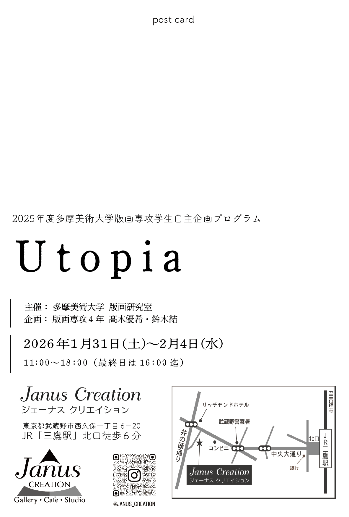 このたび、多摩美術大学絵画学科版画専攻に在籍する 4 年生、高木優希と鈴木結による 2 人展「