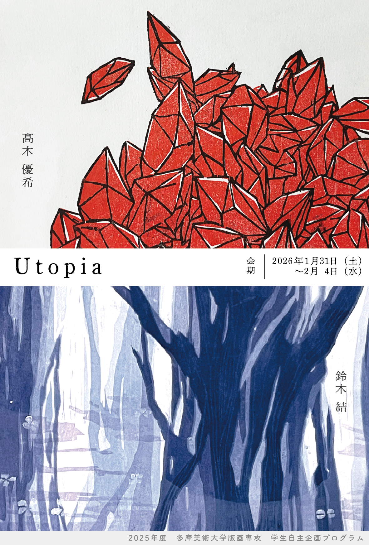 本展は、4 年間にわたり多摩美術大学で版画を学び、技術と表現を深めてきた両作家の集大成とし