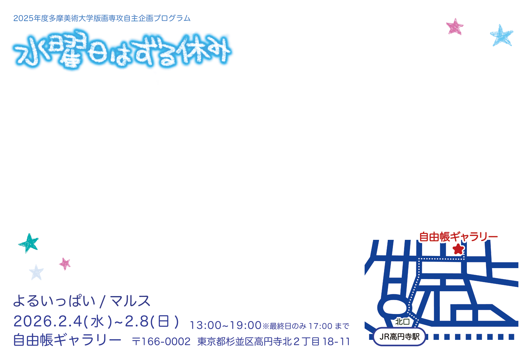 会場:自由帳ギャラリー〒166-0002 東京都杉並区高円寺北2-18-11